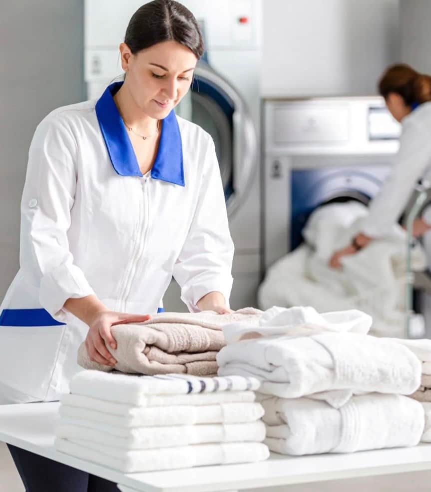 Un linge toujours impeccable, lavé et traité par une blanchisserie rapide, sérieuse et engagée dans une démarche éco-responsable.